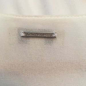 Only worn a few times. I did notice a small spot that I couldn’t tell if it was apart of the splatter print or something else (it’s tiny). There is no stretch to the fabric and the back is very sheer.