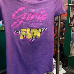 Local Celebrity brand “Girls Just wanna have fun” t-shirt! Cute graphics on the softest ever fabric. Really comfy & cute! Really mild pilling pictured in last photo.