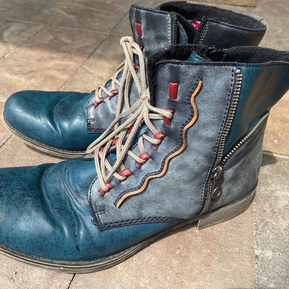 Fun Rieker ankle blue soft leather boot. Size 42 = 10.5