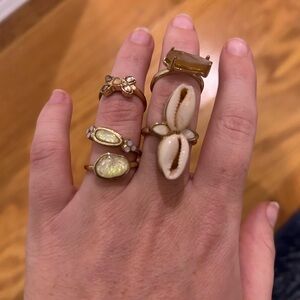 Enhance your style with this elegant gold and cream shell ring set. Perfect for any occasion, these rings add a touch of sophistication to your look.