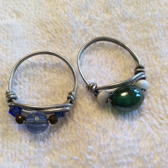 Artisan made, Aluminum Wire, won’t turn color, Glass Beads. Size 9...great for middle or forefinger. Stackable!