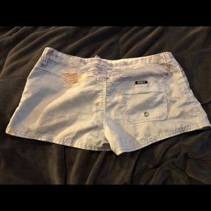 The dirt looking stuff on the shorts is part of the design. They are supposed to look like sandy, ripped shorts. Really fun as cover-up shorts!