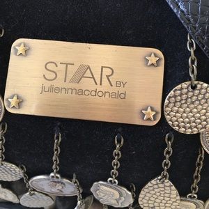 This unique Shoulder bag is designed be a local U.K. Designer! It is an artistic piece, One side is plain with logo and the other side has British like coins hanging in antique gold color! You can carry it either way! Preloved! Has lots of space, can fit a wallet, cellphone, keys, and a small makeup bag! has a zipper closure to secure your stuff! In excellent like new condition! Open to best offer!