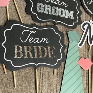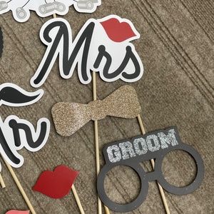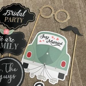 In great like new condition. 24 piece wedding accessories for a Photobooth or bachelor/bachelorette party. In really great condition, none are damaged or dirty, all look brand new. Comes in a plastic bag slip and can pack this carefully in bubble wrap for shipping.