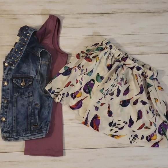 Cute skort with colorful bird detail. Elastic waistband. Perfect if you want to be cute, but still comfy.