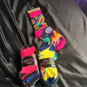 21 PAIRS!!! 2 x 10 packs of colorful bright short socks with silly and fun faces. 1 pair of longer space themed socks.