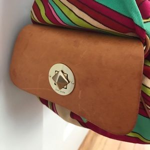 Kate Spade shoulder bag perfect for summer! Bright colors would go great with a crisp white dress for a day shopping or night out. Bag has some water marks on strap and side pocket. Otherwise in great condition. Dust bag included.
