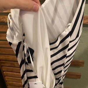 Aakaa black and white stripped maxi summer dress with adjustable spaghetti straps and a thin tie belt. Only worn to try on, still has tag on.