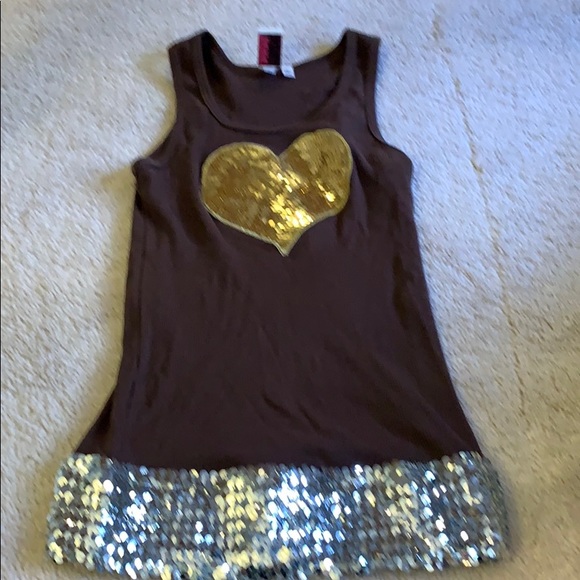 Brown tank with gold sequin heart and silver sequin bottom. Worn once