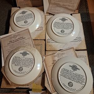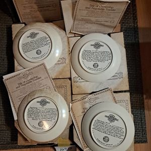 Complete set of 4 - Super Fun - Vintage Norman Rockwell On Tour Plates (7.5 inch), Newell Pottery Set of 4 with documents, original boxes and Certificates of Authenticity