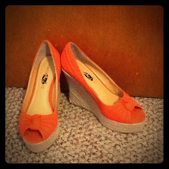 These neon-orange heels are fun to wear and go great with lots of things. (Gently used, 4in from the heel but feels about 2 1/2in)