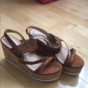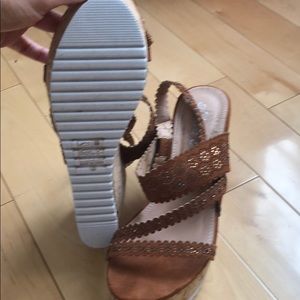 These wedges are so comfortable and fun and a color that can match any outfit! The are embellished with brown studs that are subtle but add some fun! Worn only once!