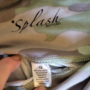 Splash leggings in a green and pink camouflage pattern. Inseam approx 24.5"