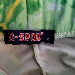 AQ-Sport leggings in a vibrant green, yellow and white tie-dye design. Inseam approx 27.5"