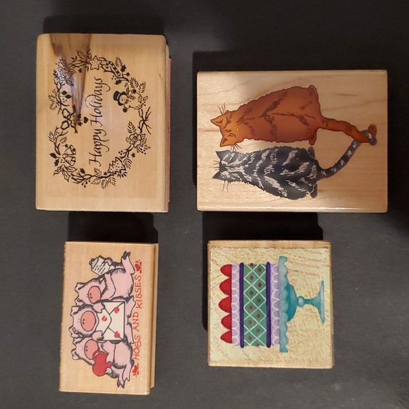 4 used wood ink stamps