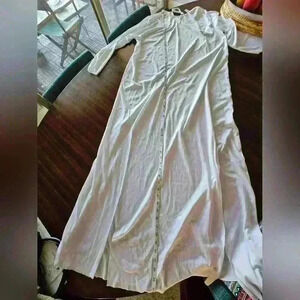 Rare 7 piece Halloween Cleopatra costume, never worn. Has a white polyester dress with tie at the back of the neck and two long front slits. Bejeweled belt and matching collar and cuff for one sleeve. The other sleeve meant for the snake adjustable bracelet. Black Cleo wig with a decorative matching tiara. Never used. Size was listed as 1X, costumes generally run small, please check the measurements.