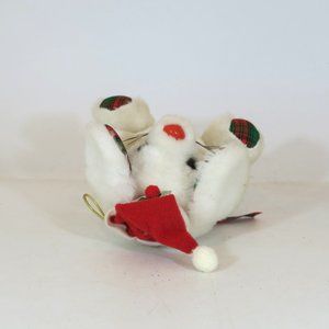 Fun World Plush Santa White Mouse Stuffed Animal Plaid Ornament Christmas
