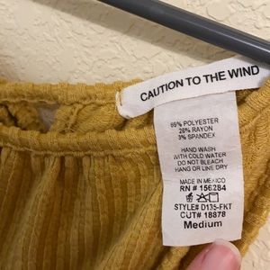 Adorable romper with ruffle trim on the bottom edge. Cinch tie waist and delicate keyhole tie back. Golden mustard yellow.