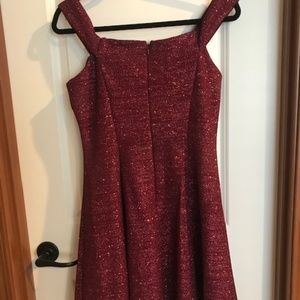 This is a really cute dress with lots of sparkle! It's listed as red but is really more of a maroon or red wine color. This dress has never been worn and is in wonderful condition.