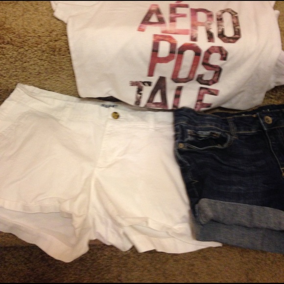 Aeropostale boyfriend shorts sz 4. Old Navy white shorts sz 6 and Aeropostale White T( size L but fits like small)