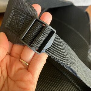 This piece is not original. Used condition. Pix show a spot on the backside where some clay hardened. Also one of the strap clips cracked. This is replaceable and the piece is very cheap online. 17” x 11”.