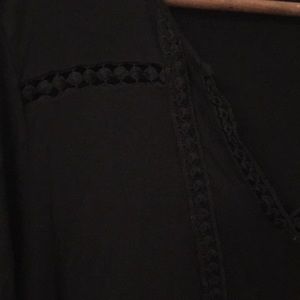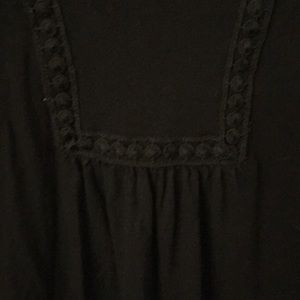 Flowing top feels like a T, nice details around neck. Loose in belly area