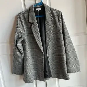 Grey and black and white blazer. No button. Open