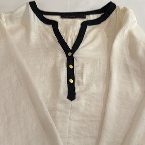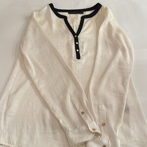 Naturally a little wrinkly but super cute blouse cream with black lining.