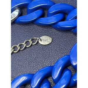 5) Heavy thick silver tone chain link and royal blue acrylic links make up this Claire’s necklace. Measures approximately 19”L with a 2.5” extender