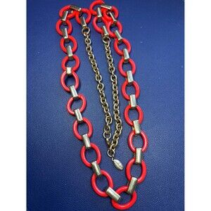 1) Ann Taylor gold tone link necklace with red oval acrylic links. Lobster claw closure, measures approximately 31”L