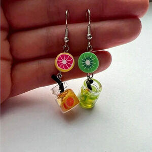 Feel refreshed with Fruit juice bottle mismatched earrings