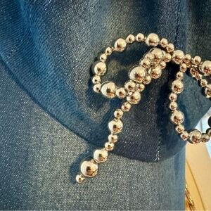 Fun denim blue adjustable hat women with silver bead bow tie NWT