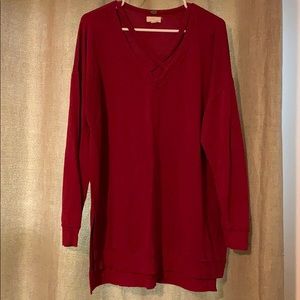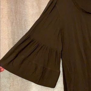 3 fall shirts, first is a pretty olive belle sleeve top, very fun and cute! The 2nd is a loft floral sheer top and the last is a long sweatshirt material top. I wore it with black leggings and booties! So fun!