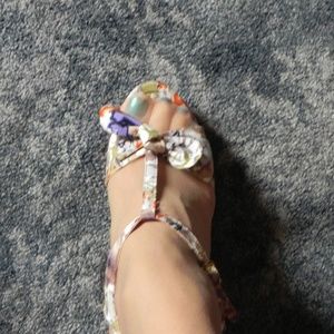 Theses are so fun to wear and can go with any outfit. They look adorable with capris!!! They are a floral print with a cork-like heel