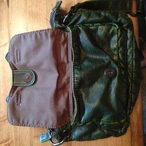 This is a diverse bag that is perfect for adding some fun to any outfit! Has two zipper pouches and a front pouch that is magnetized shut. There is also an adjustable strap 💚