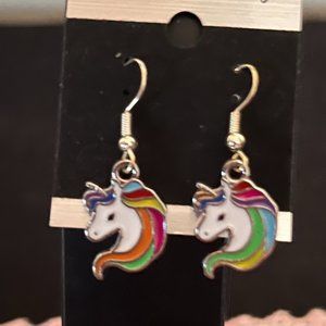 Handcrafted silver-toned fashion Fun Unicorn pierced earrings
