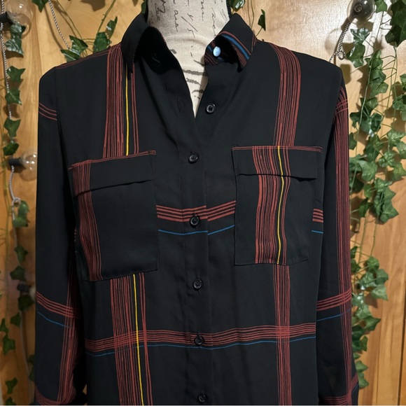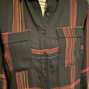 Different color line design, x-small, button up blouse. Great condition! Keep in temperature controlled room.