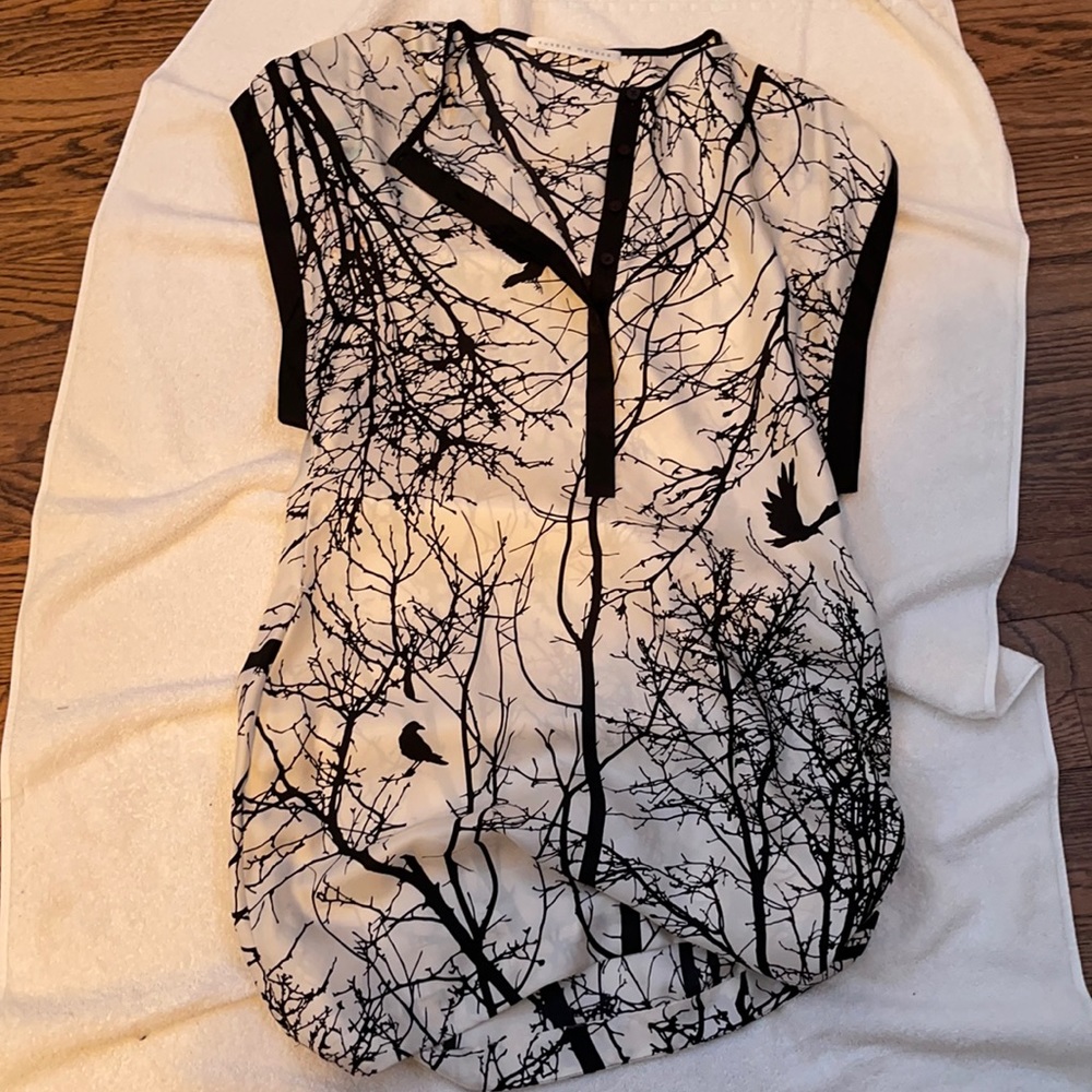 This fun pattern button up top is such a unique shirt in perfect condition only been worn once by a model a at a photo shoot