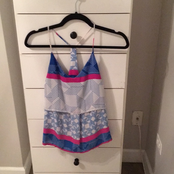 Blue pink white silk tank