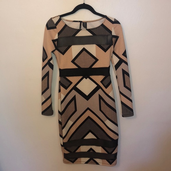 Fun patterned dress with slits that can be dressed up for a wedding or fun for the club, spandex material (super flattering), worn once, great condition