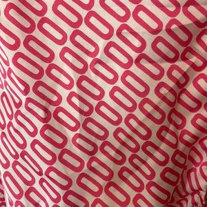 Pink patterned button down, tie front and sinched sleeves. Never worn with tags! Size L