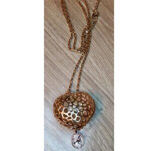 Fun pink sparkling rhinestone puff puffy heart long chain necklace bejeweled.