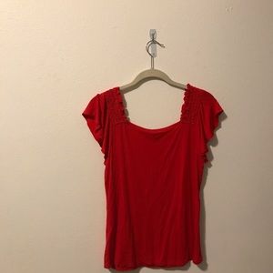 Cherry red blouse with flutter sleeves. Very comfortable fabric.