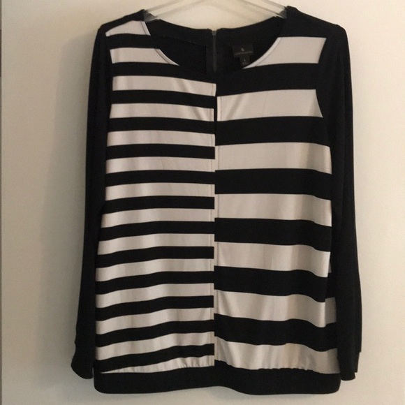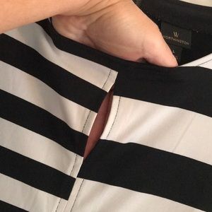 Black & white Jersey top with peek hole neckline & funky zipper in back
