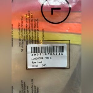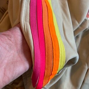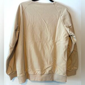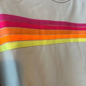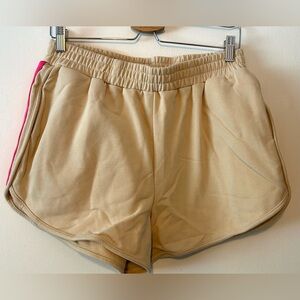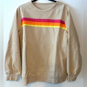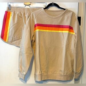 Women’s size large. Shorts and crewneck sweatshirt. Poly cotton blend. Bright stripes! No tags, but new in bag. Apricot/tan color. Retro style.