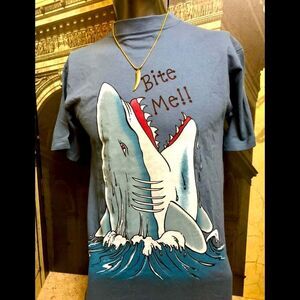 Fun shirt with shark by Sansegal Sportwear in size medium. 100% cotton and in like new condition.