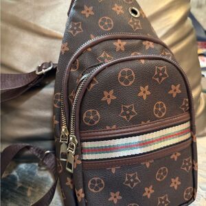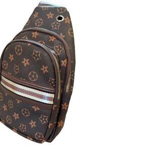 Fun sling backpack faux leather replica w two front pockets