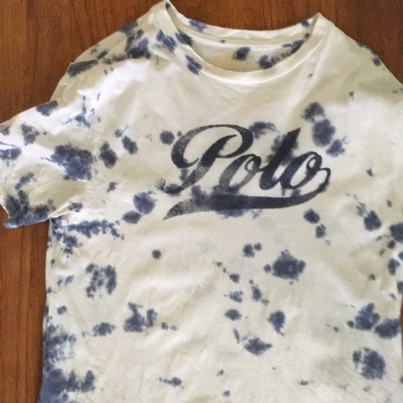Indigo dye spotted t shirt perfect for summer. All cotton. Worn and loved but still has lots of life to give. One very faint spot on front (see last pic). Barely visible but need to mention
