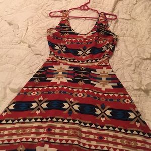 It's fitted at the top and is flowy at the bottom. It's a silky feel. Doesn't wrinkle!