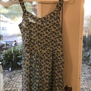 Small flowers on v neck front and button back romper. Runs fairly small Fun and comfortable to go out and about in.